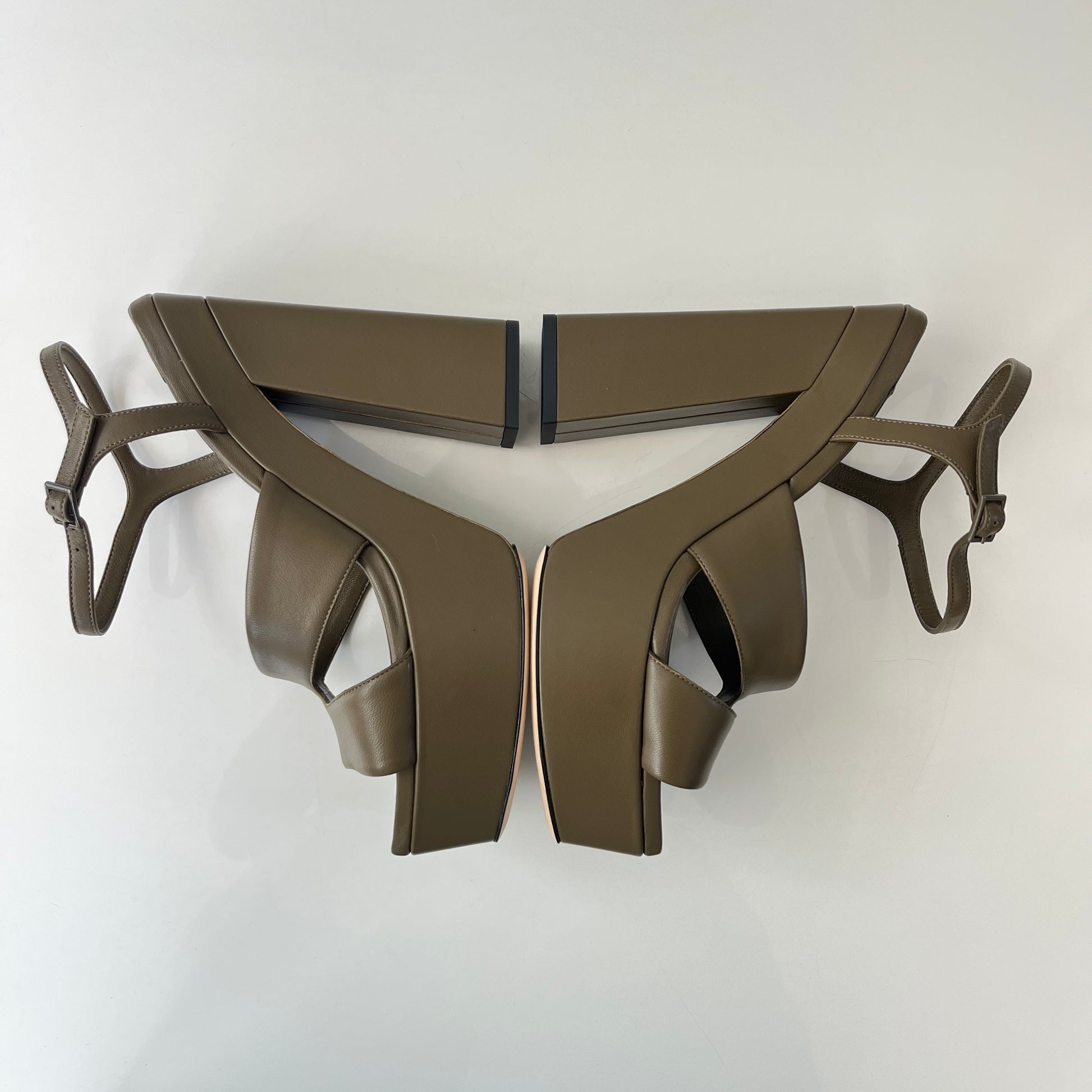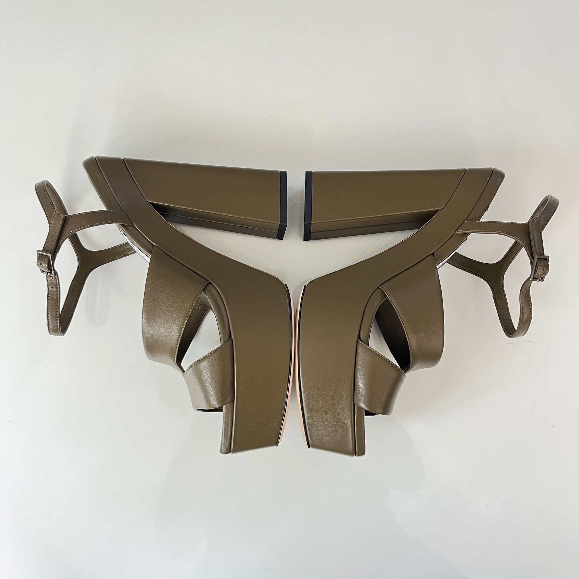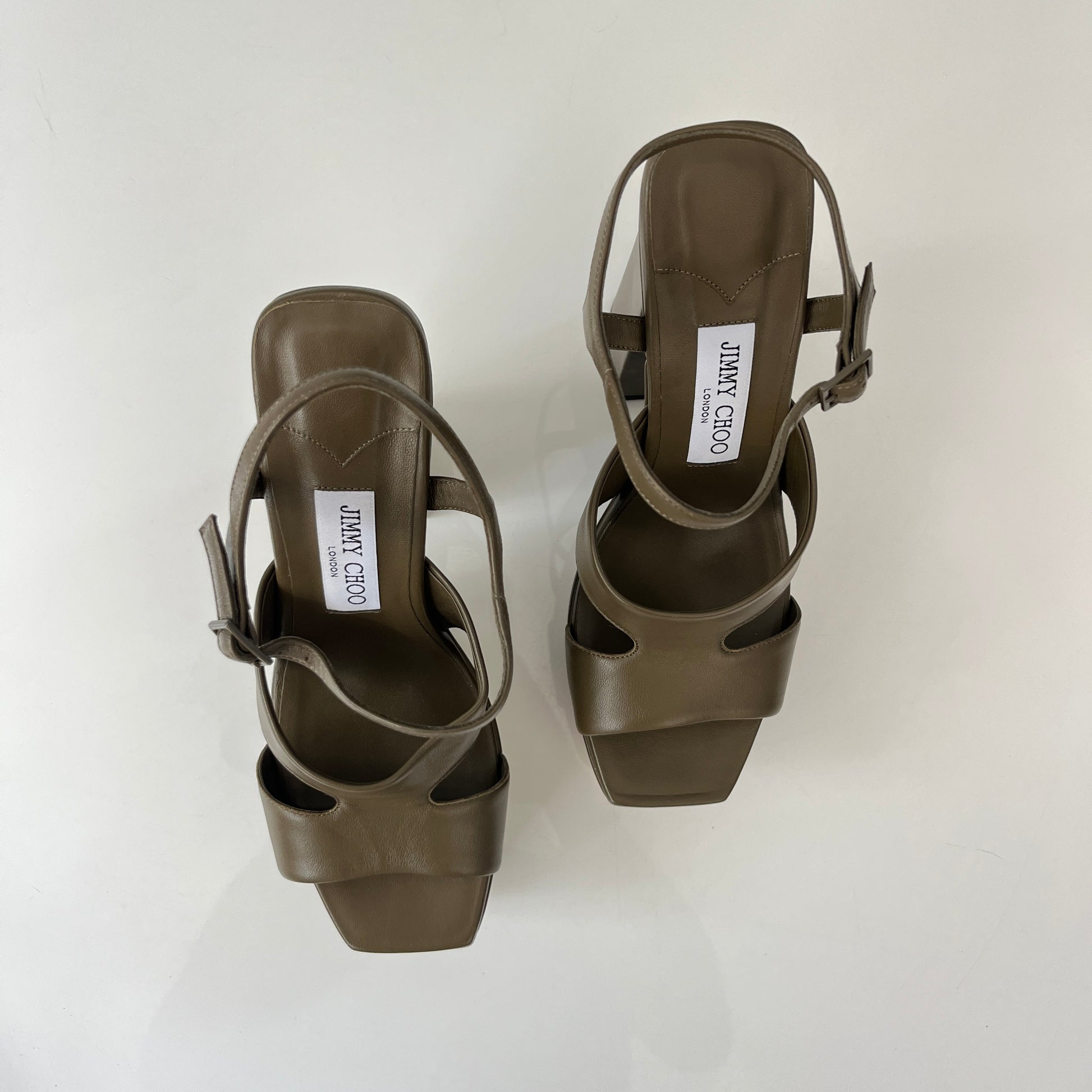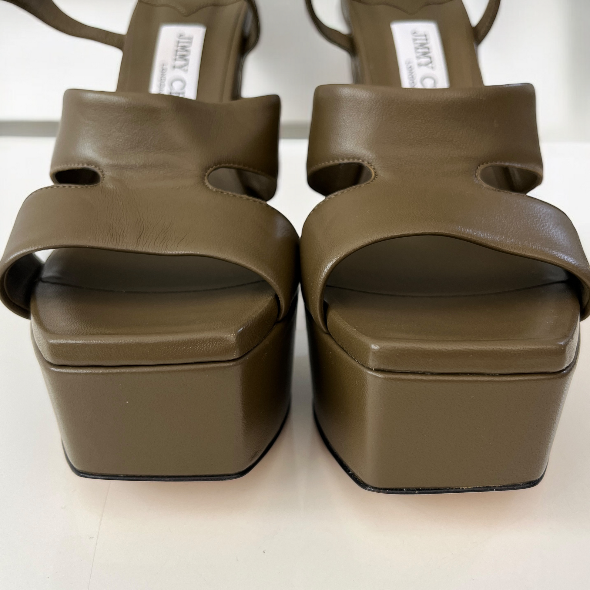 Leather upper and sole. Made in Italy. Ankle strap with buckle closure. Square toe. Approx 140mm/ 5.5 inch heelApprox 40mm/ 1.5 inch platform. Our Style No. JIMM-WZ401. Manufacturer Style No. ELLISON/PF 140.
