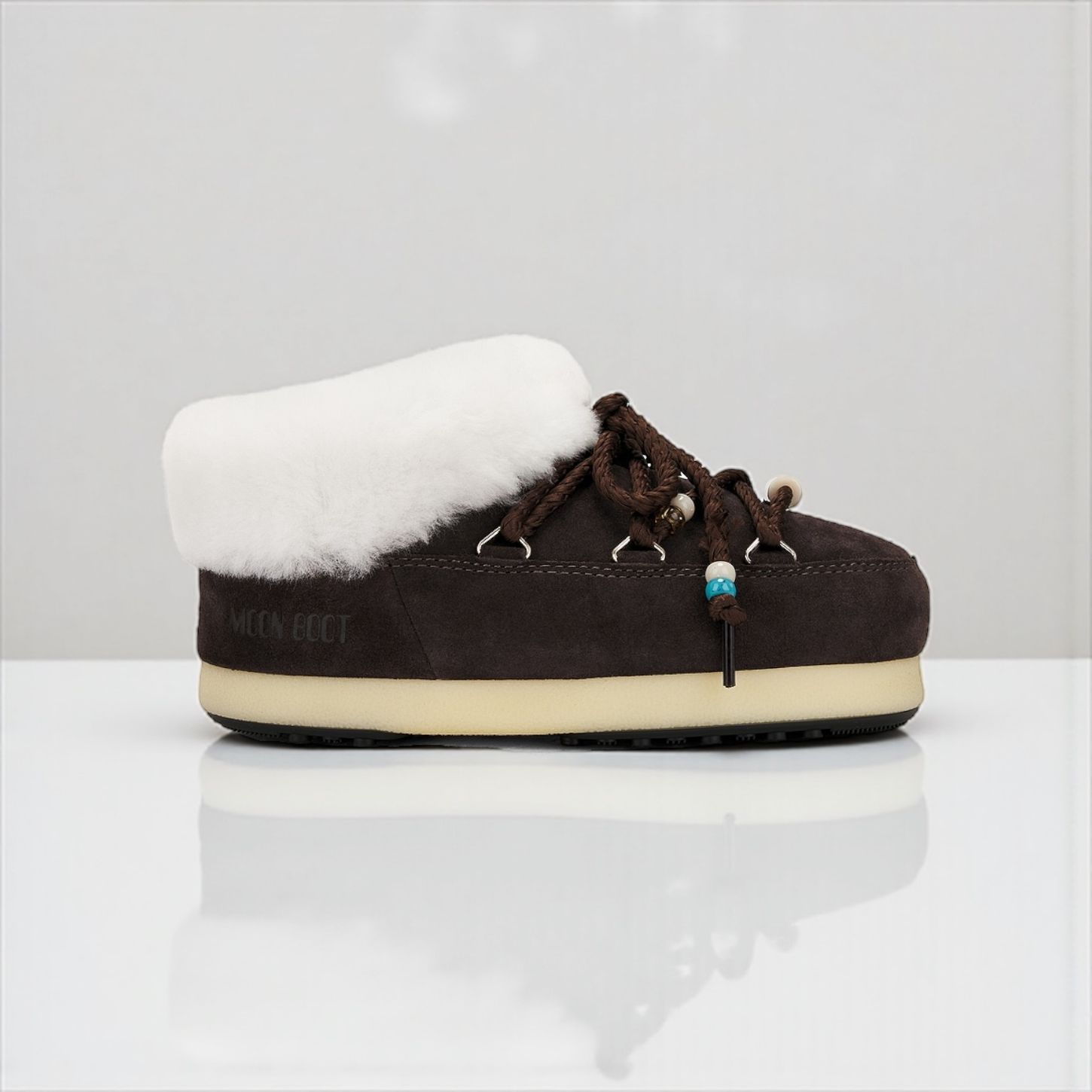 MOON BOOT Evx Mule Suede Bead in Dark Brown & Natural