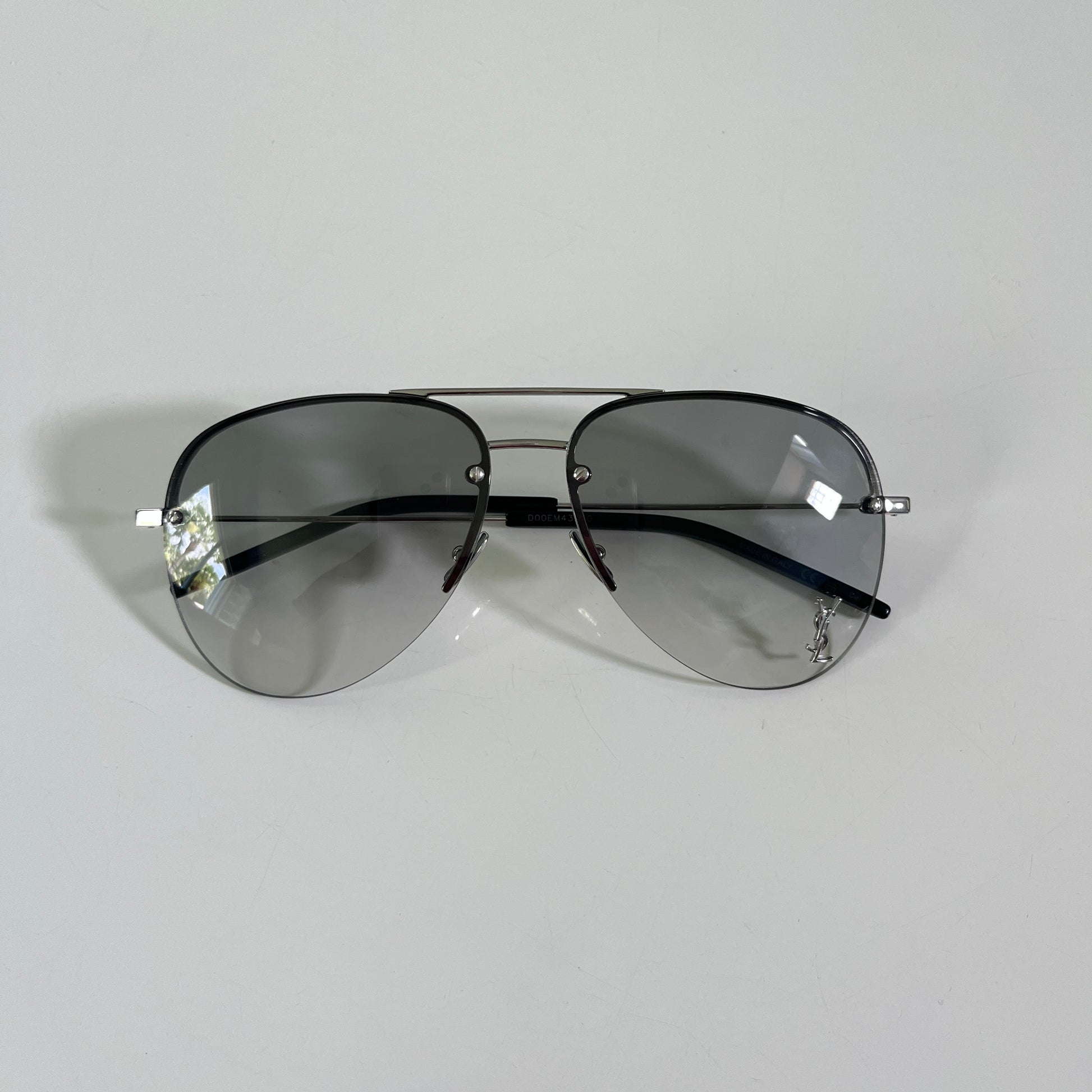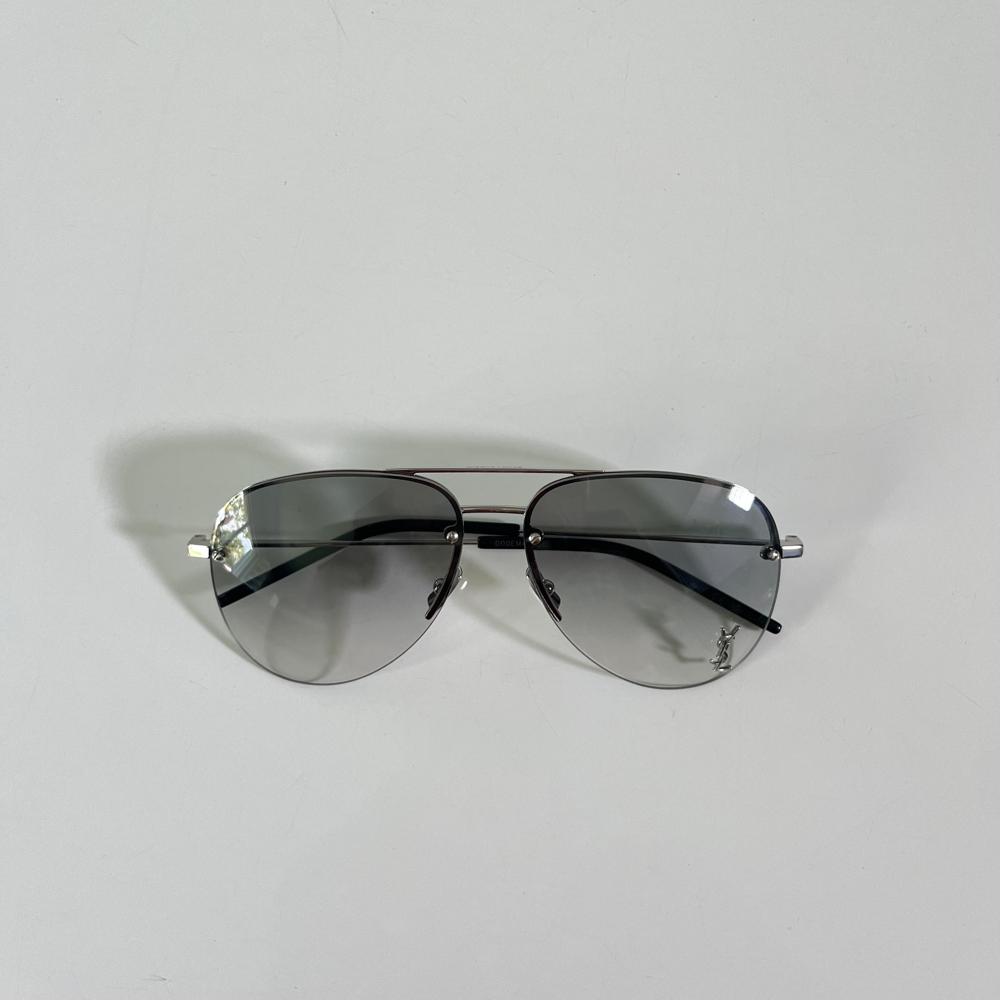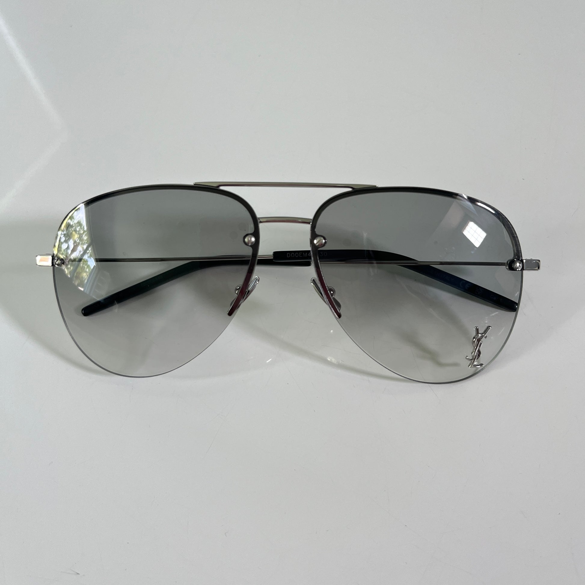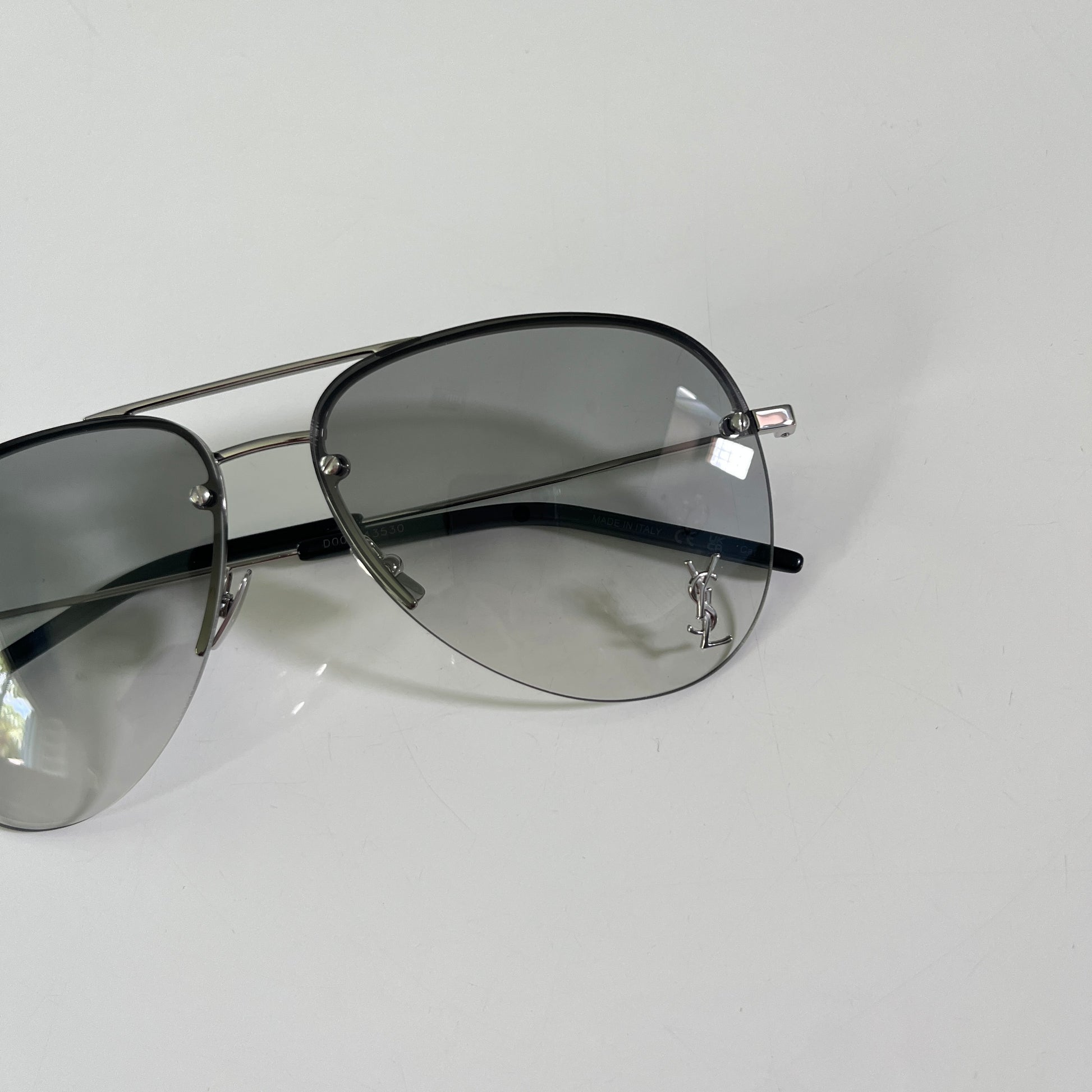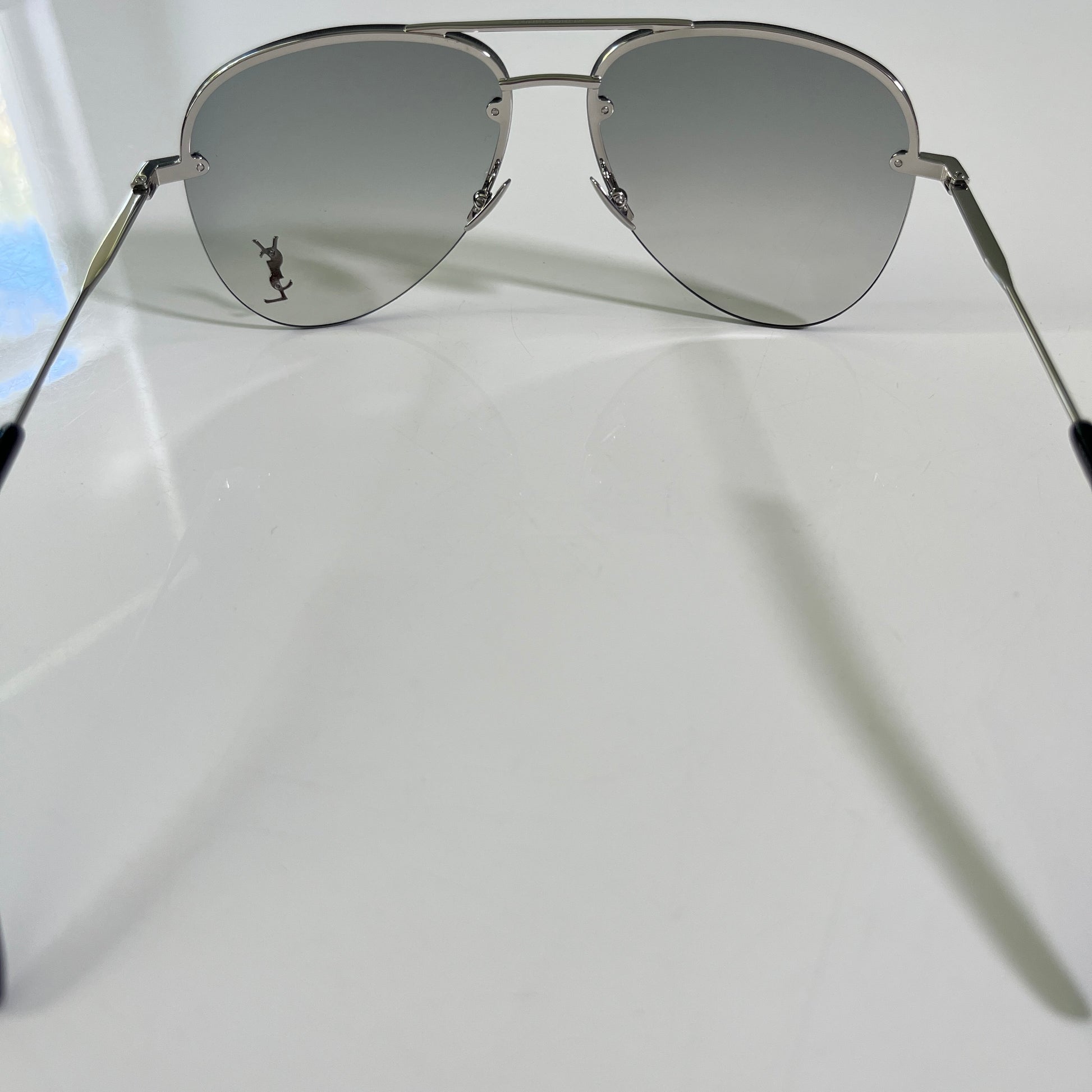 Saint Laurent Classic 11M Sunglasses in Shiny Silver & Gradient Grey