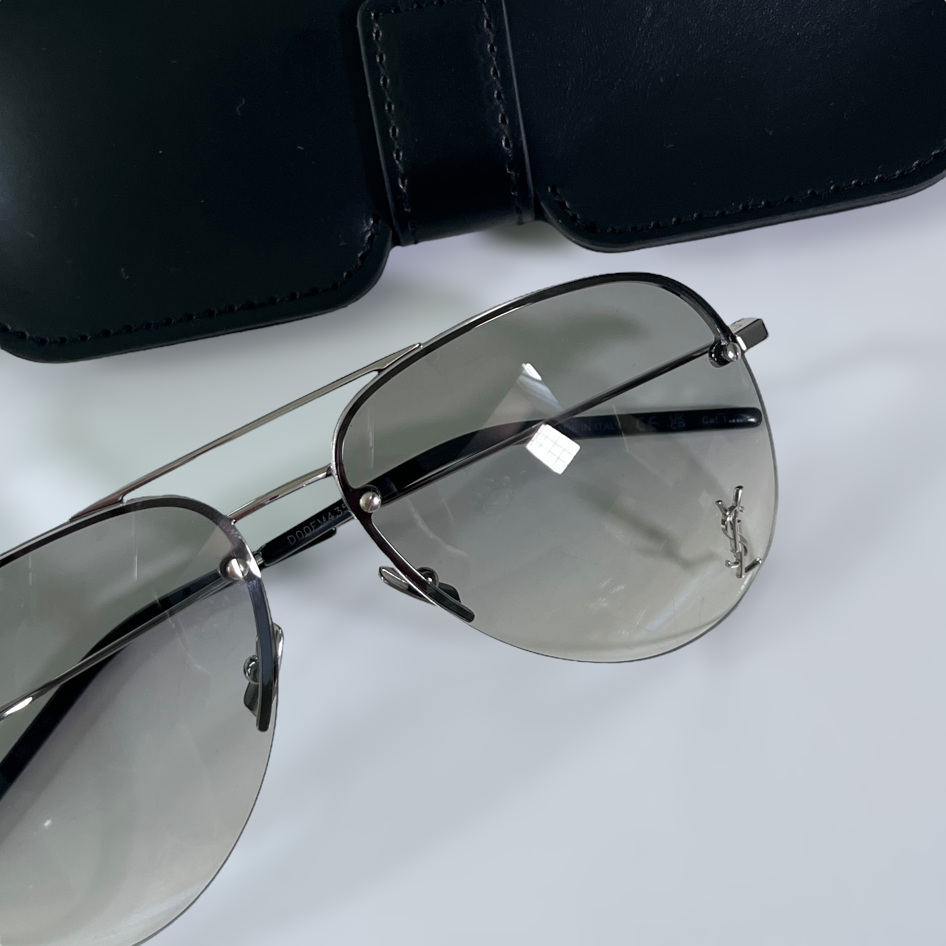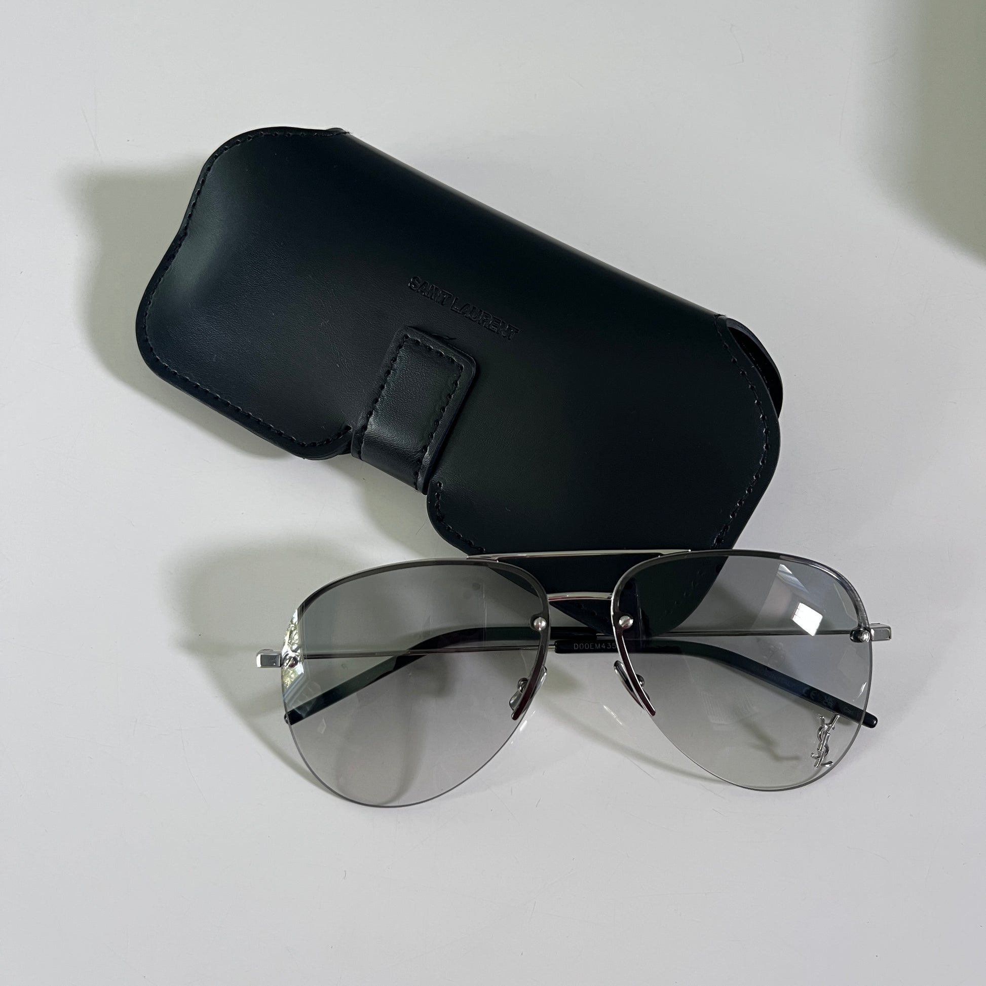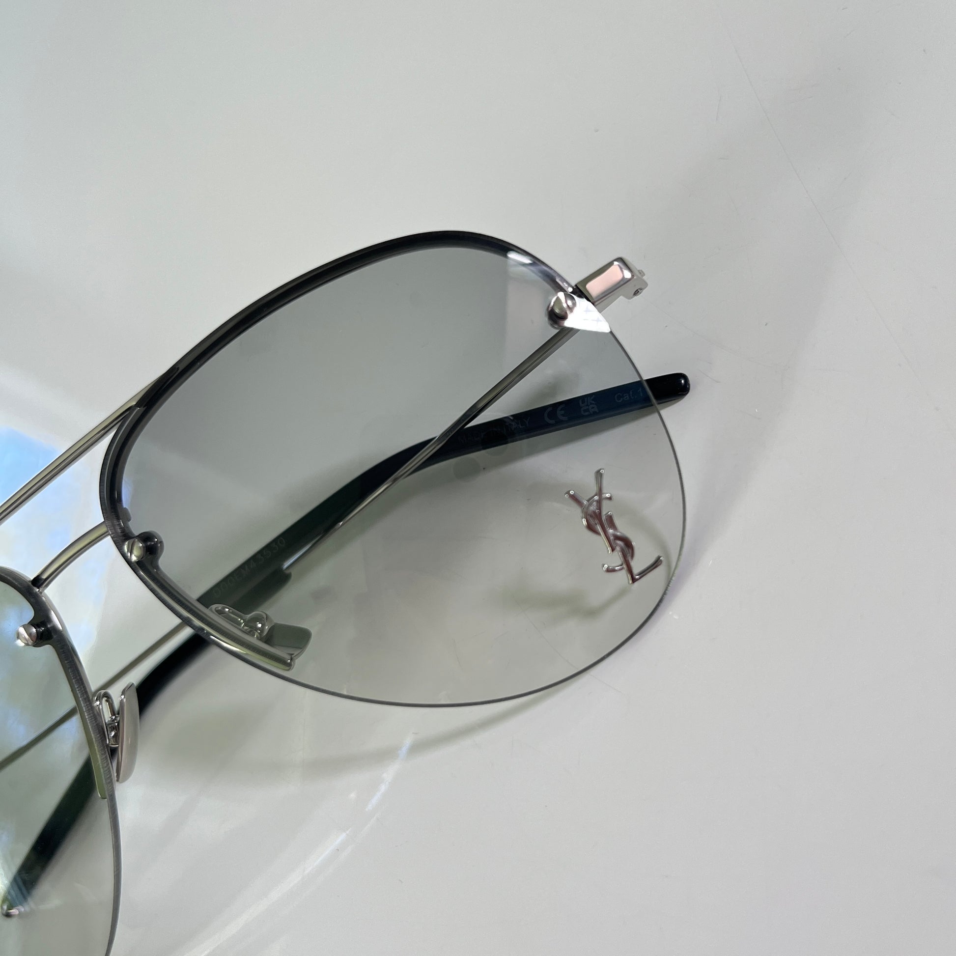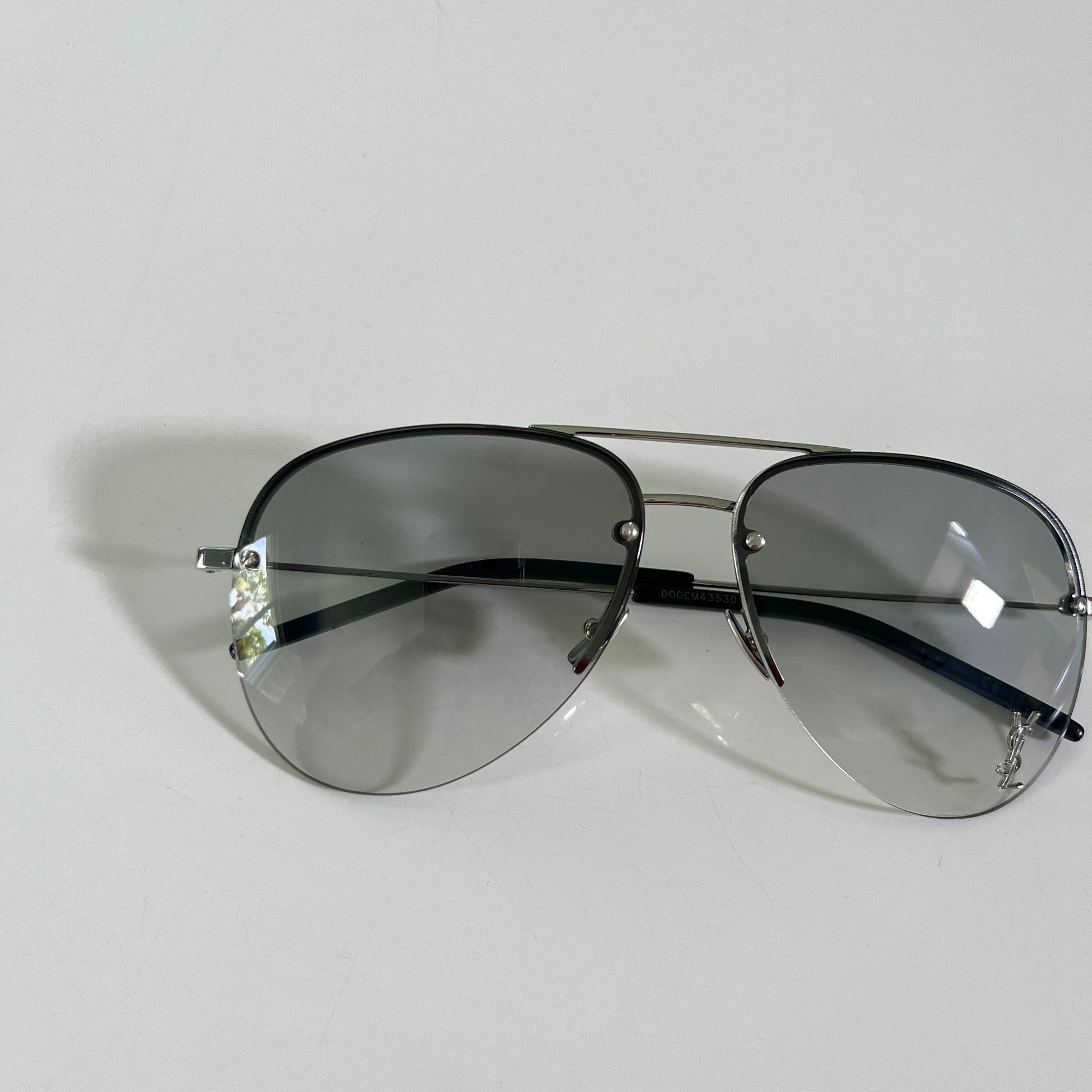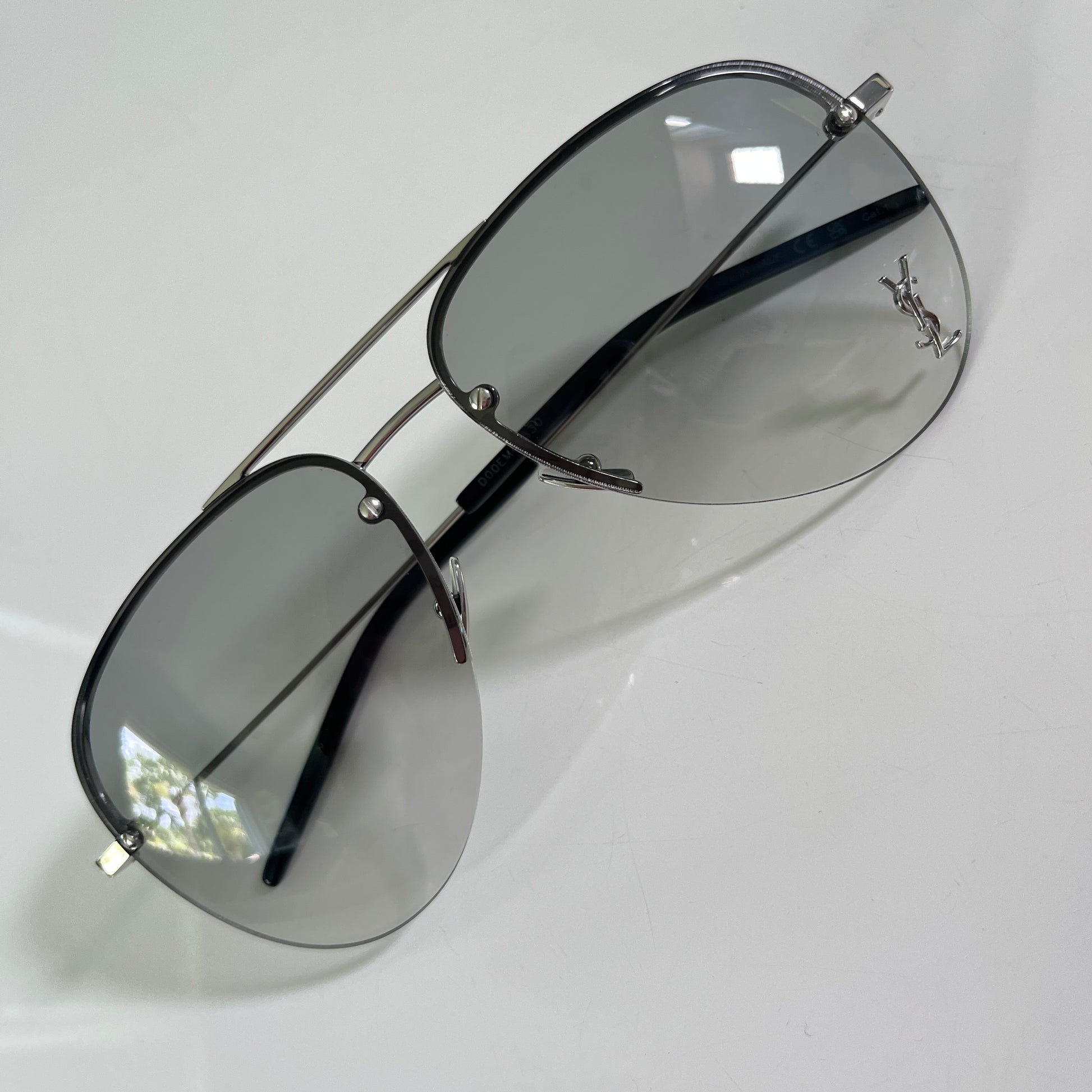 Saint Laurent Classic 11M Sunglasses in Shiny Silver & Gradient Grey